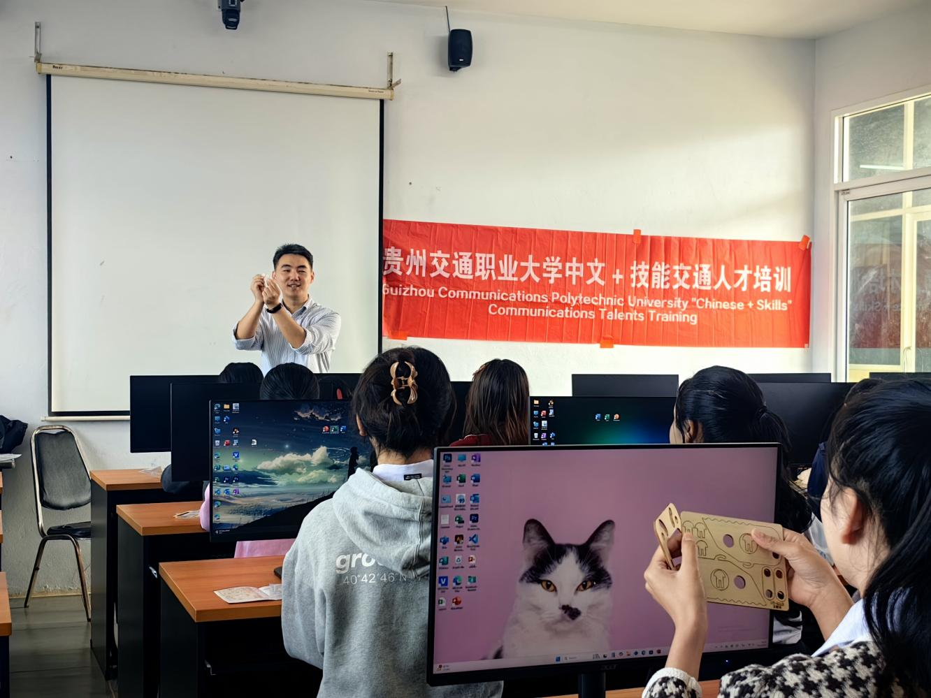 (我校路桥工程学院教师在境外培训点授课)